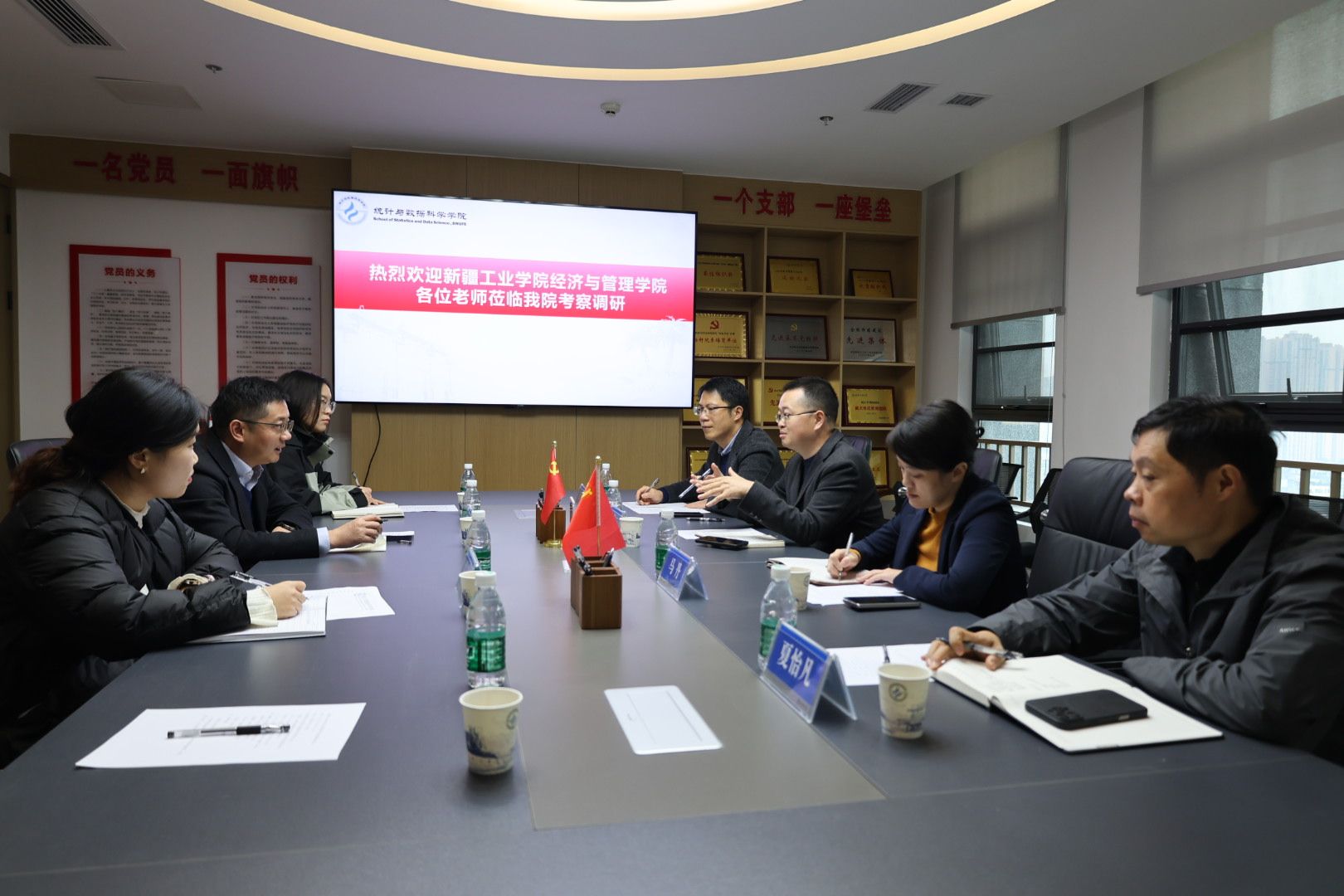 11月21日上午,新疆工业学院经济与管理学院党委副书记赵海伟一行赴我院进行调研交流。学院党委副书记、纪委书记邹先云、副院长马丹、经济统计系主任夏怡凡、学工组长王英出席座谈会。