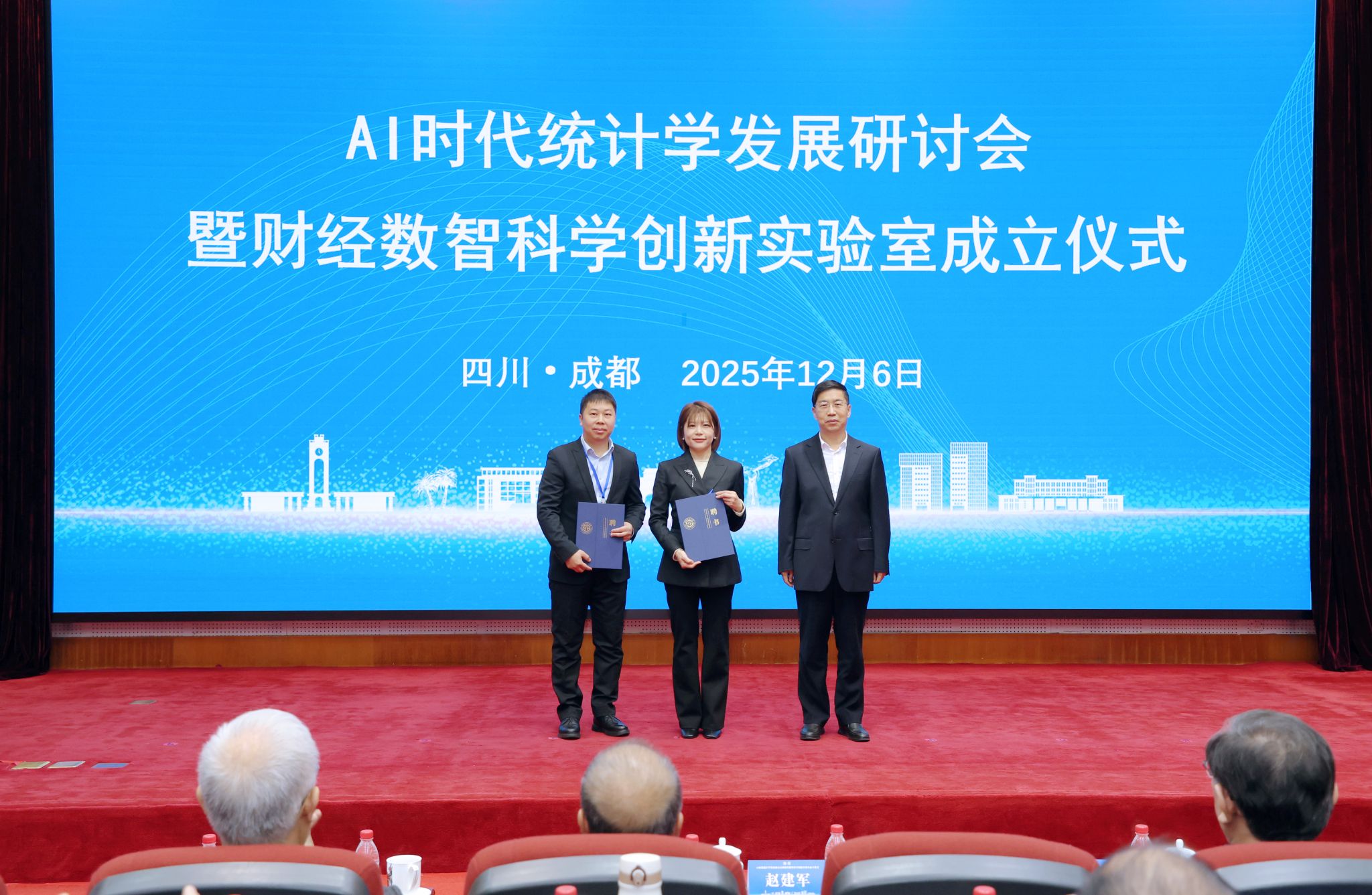 12月6日,AI时代统计学发展研讨会暨财经数智科学创新实验室成立仪式在在柳林校区成功举办。国家统计局原总工程师文兼武,中央财经大学原党委书记、江西财经大学讲席教授邱东,中国科学院院士、清华大学讲席教授陈松蹊,弘泰恒业投资公司董事长、79级统计校友任道德,学校党委书记赵建军,党委副书记、校长李永强等出席开幕式。来自国家统计局、清华大学、厦门大学、京东集团、数库(上海)科技有限公司等50余所相关单位、高等院校、科研院所、知名企业的专家代表以及学校师生共200余人参加活动。学校党委常委、副校长李志生主持开幕式。