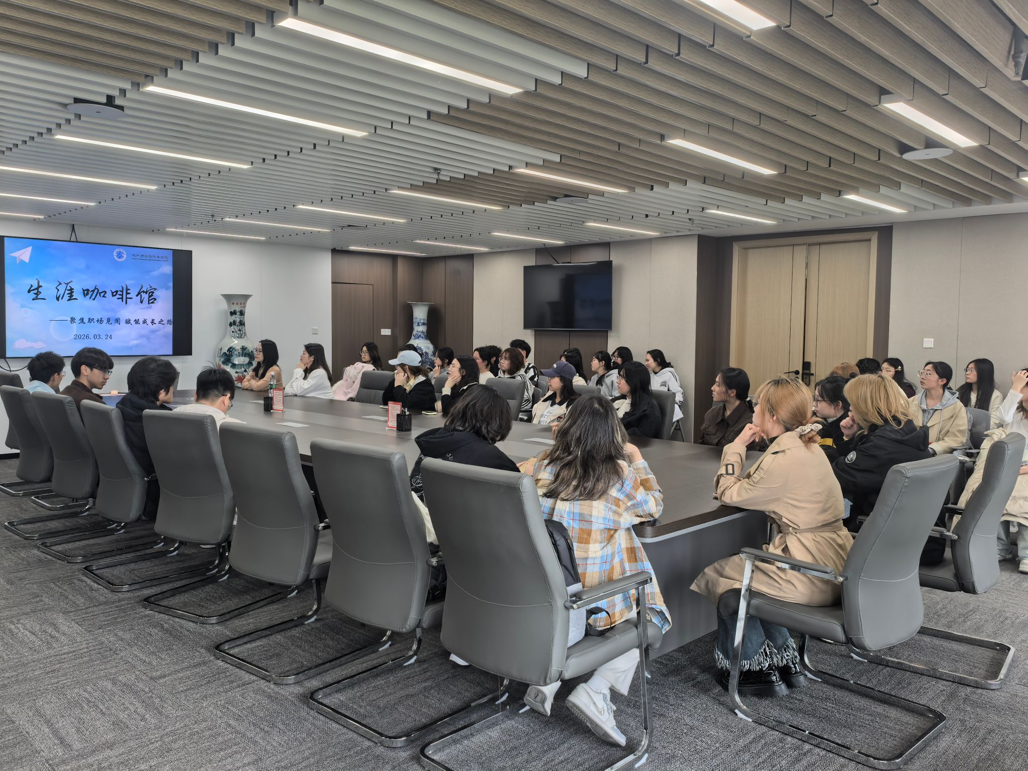在热烈的掌声中,本期“生涯咖啡馆”活动圆满落幕。此次活动聚焦金融行业岗位选择、职业适应和个人成长等核心问题,围绕银行相关岗位的职业发展展开,通过与一线从业者的深度对话,既为迷茫中的学子点亮了职业航向,也为他们从容迈向职场注入了坚定信心。未来,我们将聚焦更多职业发展与成长议题,陪伴青年学子在探索中遇见更好的自己。