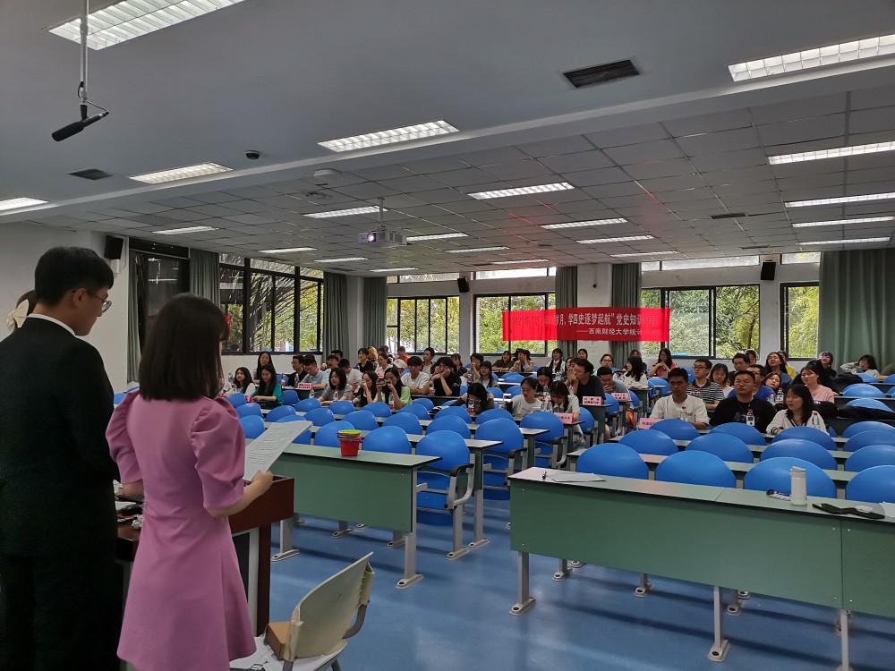 学生党建工作站于2021年6月4日晚上在经世楼E103顺利开展“忆百年峥嵘岁月,学四史逐梦起航”主题党史知识竞赛决赛。